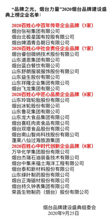 “品牌之光 煙臺力量”2020煙臺品牌建設盛典隆重舉行