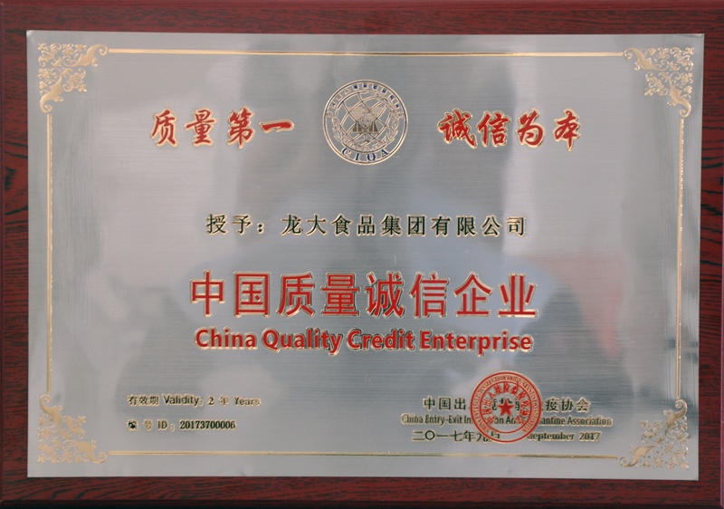 龍大集團榮膺“2017中國質(zhì)量誠信企業(yè)”獎