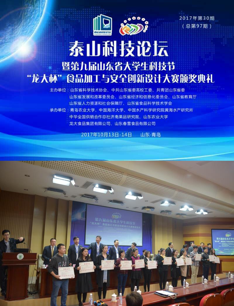 10月14日,泰山科技論壇暨第九屆山東省大學(xué)生科技節(jié)“龍大杯”食品加工與安全創(chuàng)新設(shè)計大賽頒獎典禮在青島農(nóng)業(yè)大學(xué)舉行。龍大食品集團有限公司參與承辦此次活動,旨在激勵大學(xué)生的創(chuàng)新創(chuàng)業(yè)意識,發(fā)掘、培養(yǎng)應(yīng)用型人才,并為他們提供創(chuàng)新創(chuàng)業(yè)平臺。